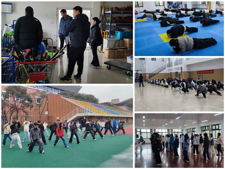 3月4日至5日,检查组一行在开学第一周先后深入奉化校区、鄞州校区的体育馆、田径场、乒乓球房、健美操房及器材室等重点场所,对场地设施的安全性、运动器材的完备性、环境卫生的整洁度进行了全面细致的检查。针对可能存在的安全隐患,现场记录问题、明确责任主体,督促后期整改到位,确保新学期体育课在安全、舒心的环境中顺利开展。期间,检查组通过现场听课、随机巡查及师生访谈等方式,重点对教师到岗状态、学生出勤情况、课堂教学组织、运动负荷安排及教学设备保障等方面进行了动态监测。从巡查整体情况来看,新学期体育教学开局良好、亮点纷呈:全体教师提前到岗、备课充分、教态端正、精神饱满;学生出勤率高、课堂纪律良好、参与热情高涨;各运动场馆教学设施运转正常,器材保障及时到位,教学秩序井然有序。